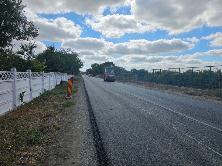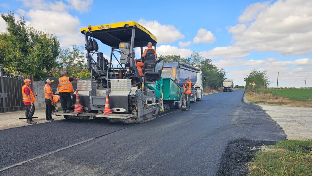 23 septembrie 2025/ Suntem pe DJ 222 Mihail Kogălniceanu -Târgușor. Frezăm carosabilul și așternem mixtura asfaltică.