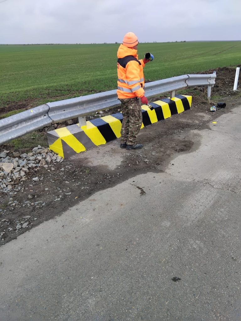 02 decembrie 2025/ Vopsim podețe. Suntem pe DJ 222 Mihail Kogălniceanu – Cuza Vodă.