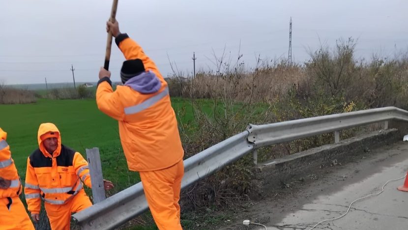 08 decembrie 2025/ Început de săptămână cu spor. Din zori drumarii sunt la datorie! Pe DJ 222 – tronsonul Cuza Vodă – DN 22C refacem capătul parapetului metalic.