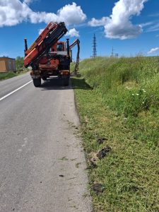 19 mai 2025/ Pentru drumuri județene BUNE și SIGURE cosim vegetația pe DJ 391 A Băneasa – Răzoarele.
